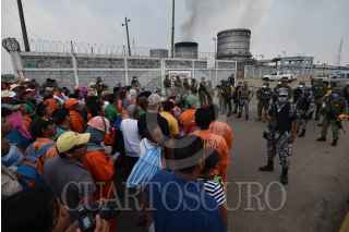 COATZACOALCOS, VERACRUZ, 21ABRIL2016.- Posterior a la explosión registrada en la petroquímica "Clorados II" en el complejo "Pajaritos" familiares de empleados que quedaron atrapados dentro de las instalaciones exigieron se les permita el acceso para reconocer los cuerpos de cada uno de sus familiares. Personal del ejercito mexicano y armada de México, resguardaron las instalaciones hasta que terminen de realizar los peritajes correspondientes. FOTO: KARLO REYES/ CUARTOSCURO.COM