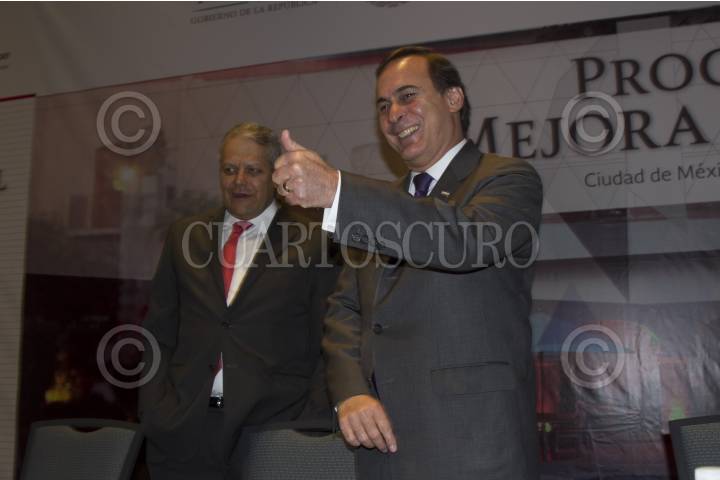 CIUDAD DE MÉXICO, 21ABRIL2016.- Enrique de la Madrid Cordero, secretario de Turismo, y Luis Videgaray Caso, secretario de Hacienda y Crédito Público, durante la presentación del programa "Mejora tu Hotel", en el Hotel Hilton. FOTO: MOISÉS PABLO /CUARTOSCURO.COM