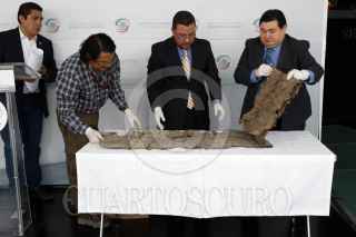 CIUDAD DE MÉXICO, 21ABRIL2016.- Jorge Luis Preciado dio a conocer un códice Maya descubiertos haces unos días en Manzanillo, Colima. El hallazgo lo encabezó el investigador Víctor Hugo González Rosas Moctezuma, quien precisó que aún le falta las pruebas de carbono 14, para precisar la fecha exacta de antigüedad. Mañana se entregarán al Instituto Nacional de Antropología e Historia. FOTO: CUARTOSCURO.COM