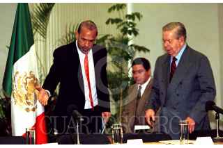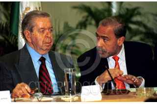 Arsenio Farell y José Angel Gurría durante la firma del convenio de reforzamiento aduanero. FOTO: Iván Meza/CUARTOSCURO.COM