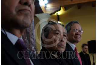 REAL DEL MONTE, HIDALGO, 22ABRIL2016.- En la Casa Grande del pueblo minero y en el marco de la VI edición del Festival Internacional de la Imagen, FINI 2016 Educación, fue inaugurada la exposición "Subjetivaciones de la existencia" del fotógrafo taiwanés Chang Chao-Tang, quien recibió un reconocimiento de manos del rector Humberto A. Veras Godoy. FOTO: ADOLFO VALTIERRA /CUARTOSCURO.COM