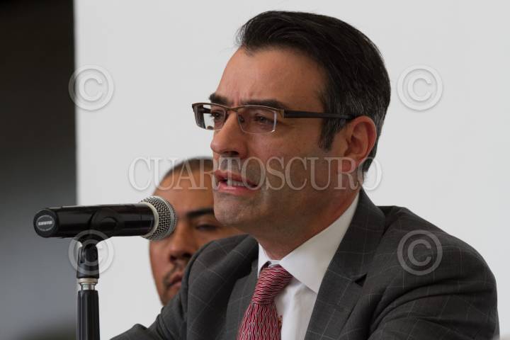 CIUDAD DE MÉXICO, 24ABRIL2016.- Alejandro Valencia, Ángela Buitrago y Francisco Cox, integrantes del Grupo Interdisciplinario de Expertos Independientes (GIEI), recogen sus cosas al terminar la conferencia de prensa en la cual dieron a concocer las conclusiones del segundo informe de las investigaciones de la desaparición de los 43 normalistas de Ayotzinapa, secuestrados la noche del 26 de septiembre de 2014, en Iguala, Guerrero. FOTO: MOISÉS PABLO /CUARTOSCURO.COM