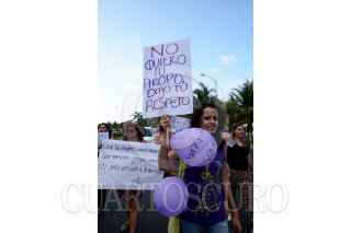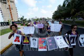 CANCÚN, QUINTANA ROO, 24ABRIL2016.- Mujeres de esta ciudad se unieron a la marcha en contra de las violencias machistas hacia la mujer convocada en distintas ciudades de la República. En la protesta exigieron respeto hacia su persona y hacia su libre transito, sin ser “piropeadas”, que la mayoría de las veces contienen mensaje violentos hacia sus personas. FOTO: ELIZABETH RUIZ /CUARTOSCURO.COM