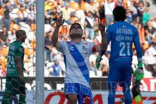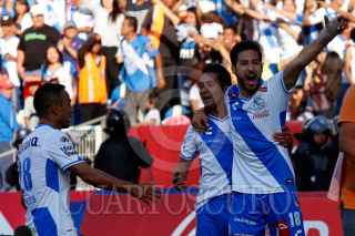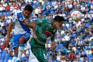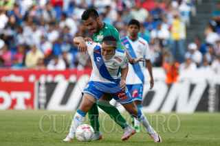 PUEBLA, PUEBLA, 24ABRIL2016.- Los jugadores Christian Valdéz y Luis Venegas durante el partido entre el Puebla de la Franja y los jaguares de Chiapas que culminó con marcador 2-1 a favor del equipo local, en partido correspondiente a la jornada 15 del torneo de Clausura 2016 de la Liga BBVA Bancomer MX disputado en el estadio Cuauhtémoc. FOTO: HILDA RÍOS / CUARTOSCURO.COM