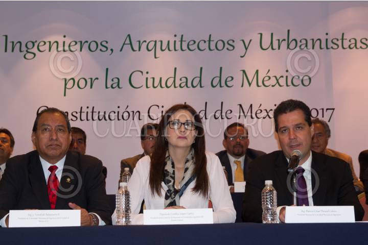 CIUDAD DE MÉXICO, 25ABRIL2016.- Cynthia López Castro, presidente de la comisión de educación en la Asamblea Legisaltiva del Distrito Federal, y Marco César Theurel Cotero, presidente nacional de la Sociedad Mexicana de Ingenieros, durante la conferencia de prensa en la cual hablaron sobre la próxima Constitución de la Ciudad de México y necesidad de que se incluya el tema del transporte público no contaminante. FOTO: MOISÉS PABLO /CUARTOSCURO.COM