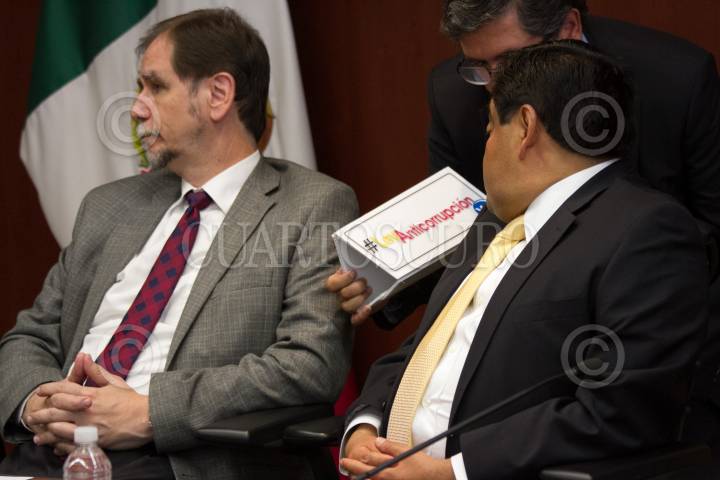 CIUDAD DE MÉXICO, 25ABRIL2016.- Agustín Basave, preidente del PRD y el coordinador perredista Miguel Barbosa, hablaron sobre la Ley Anticorrupción que se esta dictaminando en la Cámara Alta. FOTO: MOISÉS PABLO /CUARTOSCURO.COM