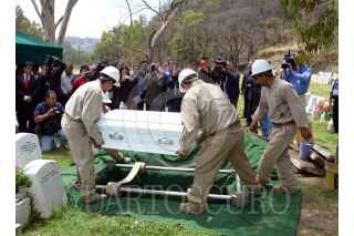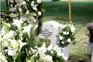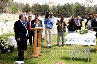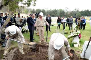 NAUCALPAN, ESTADO DE MÉXICO, 25ABRIL2016.- Hoy se inhumaron los restos de Ángela, la menor no reclamada que permaneció en el Instituto de Ciencias Forenses más de un año sin ser identificada, y que fuera encontrada el 23 de marzo de 2015 dentro de una maleta en la calle de Berlín, en la colonia Juárez. El presidente del Tribunal Superior de Justicia de la Ciudad de México, magistrado Edgar Elías Azar, y el jefe de gobierno capitalino, Miguel Ángel Mancera Espinosa, montaron una guardia de honor ante su féretro, antes de que partiera el cortejo fúnebre compuesto por consejeros de la Judicatura, magistrados, jueces y funcionarios del Tribunal, hacia un panteón en Naucalpan, Estado de México. FOTO: ARMANDO MONROY /CUARTOSCURO.COM