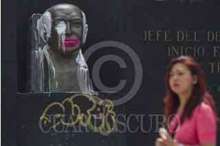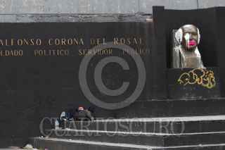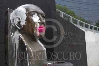 CIUDAD DE MÉXICO, 26ABRIL2016.- El busto en honor a Alfonso Coronal del Rosal, ex líder del PRI, fue vandalizado. El monumento se ubica en la Glorieta de los Insurgentes. FOTO: MOISÉS PABLO /CUARTOSCURO.COM