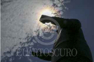 CIUDAD DE MÉXICO, 27ABRIL2016.- Debido a la concentración de cristales de hielo en la atmósfera, un halo solar se formo sobre la ciudad, el fenómeno óptico es producido por la reflexión de la luz solar de estos cristales. FOTO: SAÚL LÓPEZ /CUARTOSCURO.COM