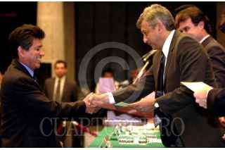 El jefe del Gobierno del D.F., Andrés Manuel López Obrador encabezó el Programa de financiamiento a la micro y pequeña empresas en el Museo de la Ciudad de México. FOTO: Victoria Valtierra/CUARTOSCURO.COM