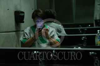 CIUDAD DE MÉXICO, 27ABRIL2016.- Una trabajadora de limpieza en la Estela de Luz, usa su teléfono inteligente. FOTO: MOISÉS PABLO /CUARTOSCURO.COM