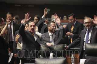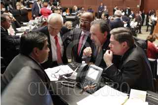 CIUDAD DE MÉXICO, 28ABRIL2016.- Los senadores Miguel Barbosa, Jesús Priego Calva, Rene Juárez Cisneros, Emilio Gamboa y Fernando Mayans Canabal, durante la sesión en la Cámara Alta. FOTO: CUARTOSCURO.COM