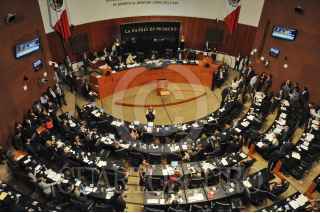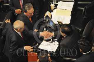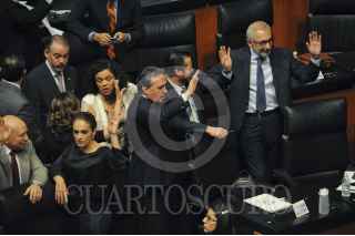 CIUDAD DE MÉXICO, 28ABRIL2016.- Los coordinadores parlamentarios Miguel Barbosa, y Emilio Gamboa, durante la sesión en la Cámara Alta. FOTO: DIEGO SIMÓN SÁNCHEZ /CUARTOSCURO.COM