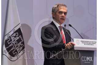 CIUDAD DE MÉXICO, 29ABRIL2016.- Miguel Ángel Mancera, jefe de gobierno capitalino, acudió al Primer Encuentro de Directores de Educación Media Superior de la Ciudad de México, en donde mencionó que es necesario desarrollar una estrategia educativa para ampliar la matrícula en universidades. Estuvo acompañado por Alejandra Barrales, secretaria de Educación, y Rodolfo Tuirán Gutiérrez, Subsecretario de Educación Media Superior. FOTO: MARÍA JOSÉ MARTÍNEZ /CUARTOSCURO.COM