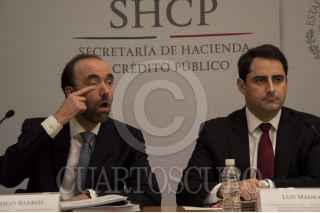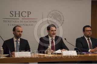 CIUDAD DE MÉXICO, 29ABRIL2016.- Luis Madrazo, titular de la Unidad de Planeación Económica de la Hacienda Pública, en compañía de Rodrigo Barros, titular de la Unidad de Política de Ingresos Tributarios e Isaac Gamboa, titular de la Unidad de Política y Control Presupuestario, ofreció conferencia de prensa para informar acerca de la situación económica, las finanzas públicas y la deuda pública al primer trimestre de 2016. FOTO: GALO CAÑAS /CUARTOSCURO.COM