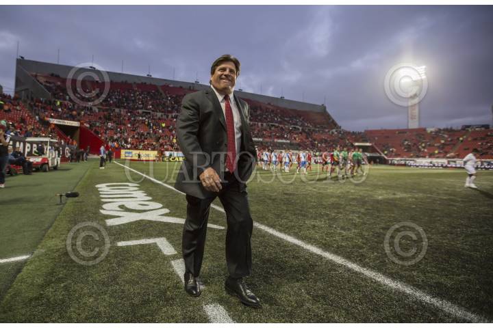 TIJUANA, BAJA CALIFORNIA, 29ABRIL2016.- Gustavo Alustiza (V) y Armando Moreno (L) disputan el balón durante el partido entre Xoloitzcuintles de Tijuana y la Franja del Puebla, realizado en el Estadio Caliente, correspondiente Jornada 16 del torneo de Clausura 2016 de la Liga MX del fútbol mexicano. FOTO: CHRISTIAN SERNA /CUARTOSCURO.COM