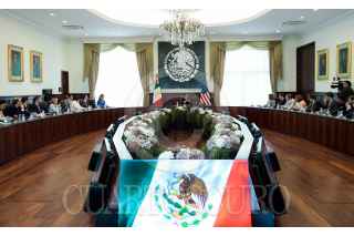 CIUDAD DE MÉXICO, 02MAYO2016.- El Presidente de la República, Enrique Peña Nieto, se reunió hoy con un grupo de congresistas de los Estados Unidos de América, encabezados por la líder de los demócratas en la Cámara de Representantes, Nancy Pelosi. Durante el encuentro, celebrado en la Residencia Oficial de Los Pinos, los legisladores expresaron su reconocimiento al liderazgo del Mandatario mexicano y los logros institucionales en los tres años que lleva su gestión. FOTO: PRESIDENCIA /CUARTOSCURO.COM