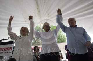 CIUDAD DE MÉXICO, 02MAYO2016.- El presidente nacional de MORENA, Andrés Manuel López Obrador, encabezó una Asamblea Informativa en las inmediaciones del Jardín Hidalgo en la delegación Coyoacán. En el acto estuvieron presentes personajes renombrados tal como la escritora Elena Poniatowska; Carlos Payán, fundador del periódico “La Jornada”; Rafael Barajas, “El Fisgón”; John Ackerman, investigador y el actor, Héctor Bonilla. FOTO: GALO CAÑAS /CUARTOSCURO.COM