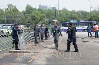 CIUDAD DE MÉXICO, 03MAYO2016.- Tras el anuncio de remozamiento para la construcción del Centro de Transferencia Modal (CETRAM), elementos de la Secretaria de Seguridad Pública retiraron a los ambulantes que se encontraban en las inmediaciones del metro Chapultepec. La zona quedó resguardada por los oficiales. FOTO: GALO CAÑAS /CUARTOSCURO.COM