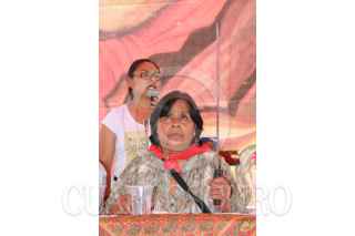 SAN SALVADOR ATENCO, ESTADO DE MÉXICO, 03MAYO2016.- Integrantes del Frente de Pueblos en Defensa de la Tierra y organizaciones en defensa de los derechos humanos, la tierra y el agua en el Estado de México, ofrecieron una conferencia de prensa donde anunciaron su postura ante la nueva Ley que Regula el Uso de la Fuerza Pública en el Estado de México, conocida como “Ley Eruviel”. En la imagen Trinidad y America del Valle. FOTO: SAÚL LÓPEZ /CUARTOSCURO.COM