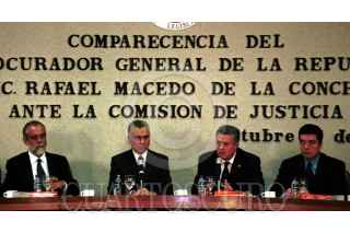 El General de brigada Marcial Rafael Macedo de la Concha, procurador general de la Republica. Por primera vez, un militar tiene a cargo la PGR. Durante el sexenio de Vicente Fox. En la gráfica durante su comparecencia en el senado de la Republica. FOTO: Susana Navarrete/CUARTOSCURO.COM