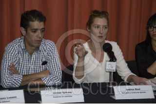 CIUDAD DE MÉXICO, 04MAYO2016.- La periodista Andrea Noel junto con el condutor de televisión, Andoni Echave, ofrecieron conferencia de prensa en el Centro Nacional de Comunicación Social (Cencos) con el fin de esclarecer las acusaciones hacia el conductor presentadas por la Procuraduría General de Justicia de la Ciudad de México tras los hechos ocurridos el pasado 9 de marzo en donde un sujeto bajó la ropa interior de la periodista en la colonia Condesa. Andoni Echave publicó recientemente un video que el mismo consiguió con el que logró demostrar que él no era el atacante y solicitó ayuda de los medios y de las redes sociales para esclarecer este hecho y que no quede en la impunidad. FOTO: GALO CAÑAS /CUARTOSCURO.COM