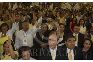 CIUDAD DE MÉXICO, 05MAYO2016.- Imágenes de Cuauhtémoc Cárdenas, quien fuera el líder moral del Partido de la Revolución Democrática y que hace medio año renunció al partido, se observaron en el Pepsi Center en donde celebraron sus 27 año como partido político. FOTO: MOISÉS PABLO /CUARTOSCURO.COM