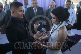 CIUDAD JUÁREZ, CHIHUAHUA, 06MAYO2016.- Un total de 58 parejas contrajeron nupcias que solían vivir en unión libre. Aunado a la celebración de los matrimonios, la Dirección del Registro Civil concretará 30 trámites de Reconocimiento, que significa otorgarles la constancia legal para brindarle reconocimiento paterno a través de sus apellidos a un hijo registrado como natural. FOTO: NACHO RUIZ /CUARTOSCURO.COM