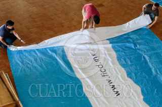 HERMOSILLO, SONORA, 06MAYO2016.- Jóvenes preparan lonas para anunciar la sexta edición del Festival Internacional de Cine en el Desierto ( FICD ) que se realizará del 11 al 15 de mayo. Este año incluye a Argentina como país invitado. FOTO: LUIS GUTIÉRREZ /NORTEPHOTO /CUARTOSCURO.COM