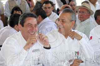 AMPICO, TAMAULIPAS, 07MAYO2016.- Baltazar Hinojosa, candidato a gobernador y Manlio Fabio Beltrones, presidente nacional del Partido Revolucionario Institucional (PRI), durante su encuentro con simpatizantes del tricolor a la elección del próximo 05 de junio. Está tarde el revolucionario institucional informó que expulsó a tres de sus abanderados en las alcaldías de Mainero, Villagrán e Hidalgo en el estado, por sus vínculos con el crimen organizado. FOTO: PRI /CUARTOSCURO.COM