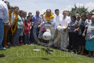 CHILPANCINGO, GUERRERO 07MAYO2016.- Héctor Astudillo Flores, gobernador del estado, dio el banderazo de entrega del fertilizante del programa “Más maíz” de la región centro en donde estuvieron presentes los presidente municipales de esta región y como anfitrión el presidente de Zumpango del Río, Pablo Higuera Fuentes, y Marco Antonio Leyva Mena. Posteriormente el gobernador y el alcalde de la capital se trasladaron a la Cnop sección C en donde inauguraron la rehabilitación de la cancha de futbol y de basquetbol. FOTO: JOSÉ I. HERNÀNDEZ / CUARTOSCURO.COM