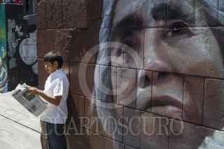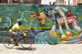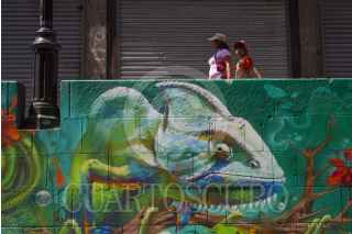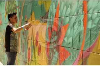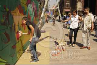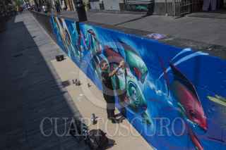 CIUDAD DE MÉXICO, 08MAYO2016.- Artistas urbanos intervinieron el espacio urbano afuera del Templo de la Santísima Trinidad, con una exhibición de murales pictóricos que busca el rescate de la zona. FOTO: ISAAC ESQUIVEL /CUARTOSCURO.COM