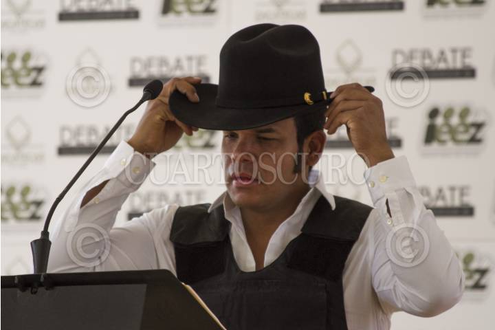 ZACATECAS, ZACATECAS, 08MAYO2016.- El candidato a la gubernatura de Encuentro Social Marco Flores salió del Instituto Zacatecano de Cultura, en donde se realizó el debate electoral con los otros candidatos, a saludar a sus seguidores. FOTO: MOISÉS PABLO /CUARTOSCURO.COM