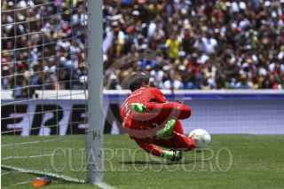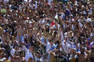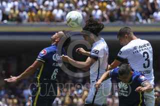 CIUDAD DE MÉXICO, 08MAYO2016.- Los Pumas de la UNAN empataron a uno gol con las Águilas del América en el estadio Olímpico Universitario, en la jornada 17 y última de la Liga MX Clausura 2016. Con este resultado los felinos no lograron alcanzar un lugar en la tabla general y quedaron fuera de la liguilla, los de coapa lograron ya estaban calificados solo esperan su lugar en la tabla. En la imagen, la porra universitaria realiza el tradicional goya. FOTO: ADOLFO VLADIMIR /CUARTOSCURO.COM