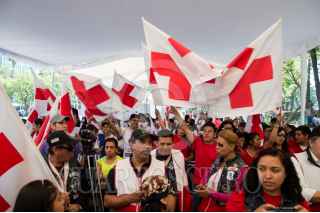 CIUDAD DE MÉXICO, 08ABRIL2016.- Más de 120 voluntarios pertenecientes a la Cruz Roja Mexicana celebraron el Día Mundial de la Institución con una serie de actividades en la glorieta del Ángel de la Independencia. Fernando Suinaga, presidente nacional de la Cruz Roja Mexicana, dirigió una palabras de aliento y reconocimiento así la institución por su papel en materia de salvaguardar la seguridad y la protección de los derechos humanos por lo que es considerada la red humanitaria más grande del mundo. FOTO: GALO CAÑAS /CUARTOSCURO.COM