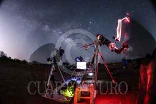 HERMOSILLO, SONORA, 08MAYO2016.- Luego de una tarde de conferencias titulada "Un Encuentro con el Cosmos", se realizo el Star Party en los campos de la escuela de Agronomía de la Universidad de Sonora, donde astrónomos, aficionados y estudiantes realizaron observación de diversos objetos en el espacio como planetas, estrellas etcétera. La jornada de observación con telescopios se prolongo hasta la madrugada de hoy. FOTO: LUIS GUTIÉRREZ /NORTEPHOTO/CUARTOSCURO.COM