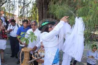 SANTA MARÍA EL TULE, OAXACA., 08MAYO2016.- El ambientalista y actor peruano, RIchard Torres se casó el mediodía de este domingo con el milenario árbol del Tule, ahuehuete con más de2 mil años y cuyo peso esta tasado en mil 600 toneladas. El activista ha visitado ya ocho países de Latinoamerica, entre ellos Argentina, Chile y Colombia, donde ha realizado igual numero de ceremonias. Esto como parte de la campaña "Cásate con un árbol" la cual inició en su natal Perú y con el que busca concientizar a la sociedad del cuidado que se debe tener del medio ambiente, además de invitarlos a sumarse a una campaña de reforestación. FOTO: ARTURO PÉREZ ALFONSO /CUARTOSCURO.COM