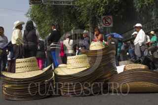 CIUDAD DE MÉXICO, 09MAYO2016.- Venta de sombreros durante una protesta en las inmediaciones de la Secretaría de Gobernación, se reporta alta radiación solar y regular calidad del aire. FOTO: MOISÉS PABLO /CUARTOSCURO.COM