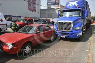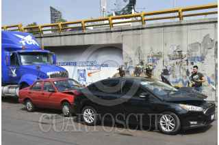 CIUDAD DE MÉXICO, 09MAYO2016.- Un choque múltiple entre un trailer, una camioneta y dos autos se suscitó en la lateral del Circuito Interior y Eulalia Guzmán, en la colonia Industrial Vallejo. FOTO: ARMANDO MONROY /CUARTOSCURO.COM