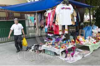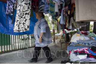 CIUDAD DE MÉXICO, 10MAYO2016.- Reina Romera Juárez, conocida como “Doña Reina”, se ha dedicado durante 30 años a la compra-venta de ropa, zapatos y juguetes de segundo uso como forma de sustente para ella y su familia: dice seguir con energía para continuar con ello hasta que Dios se lo permita. Con dos hijos de 25 y 32 años de edad Romero Juárez se levanta a las cinco de la mañana para prepararles su desayuno y alistar su mercancía, alrededor de las nueve horas se instala con lonas, catres y tapetes para las prendas a las afueras del mercado de la colonia Reynosa, ubicado en la delegación Azcapotzalco, y se retira aproximadamente a las cinco de la tarde. Ella espera celebrar el Día de las Madres trabajando en lo que ha hecho durante tres décadas pero dice que no sólo es decisión de ella sino de sus hijos. FOTO: GALO CAÑAS /CUARTOSCURO.COM