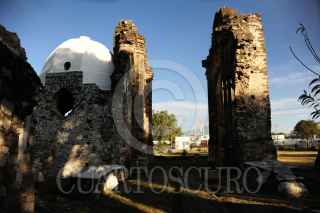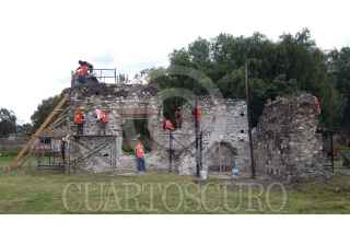 SAN JUAN TOTOLAC, TLAXCALA, 10MAYO2016.- Especialistas del Instituto Nacional de Antropología e Historia (INAH) intervinieron los vestigios del Ex Convento de Santa María de las Nieves, ubicado en el municipio de San Juan Totolac, Tlaxcala. Los trabajos se enfocaron en la consolidación de los muros y la cúpula de la edificación, considerada símbolo de la identidad tlaxcalteca porque, según la tradición popular, desde ahí partieron 401 familias para poblar el norte del país en el siglo XVI. De acuerdo con el INAH, la caravana fue integrada por familias de los cuatro señoríos principales de Tlaxcala: Quiahuixtlán, Tizatlán, Ocotelulco y Tepeticpac, acompañadas de frailes, quienes fundaron lo que son los estados de Coahuila, Zacatecas, Jalisco y San Luis Potosí. FOTO: RAMÓN SANTACRUZ /INAH/CUARTOSCURO.COM