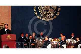 Vicente Fox Quesada encabezó la comida con motivo del LXXXV aniversario de la Confederación de Cámaras Nacionales de Comercio, Servicio y Turismo, en el Salón Adolfo Lopez mateos de la residencia Oficial de Los Pinos. FOTO: Susana Navarrete/CUARTOSCURO.COM