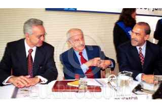 Raul Tornel, Ignacio Burgoa Orihuela y Jose Angel Gurria bromea, durante el congreso de insdustriales que se realizo esta mañana en el Restaurante del Lago. FOTO: Ivan Meza/CUARTOSCURO.COM