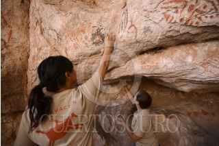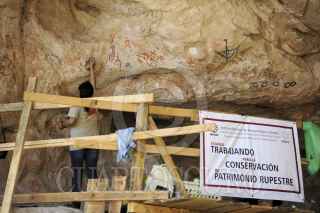 LA PINTADA, SONORA, 11MAYO2016.- Se cumplen diez años de restauración y de investigación arqueológica en La Pintada, Sonora. Los dibujos ahí representados son animales y aves forman parte del arte rupestre del sitio. El sitio cuenta con una ocupación de hasta 3 mil años y hay más de 2, 000 motivos pictóricos esparcidos por el cañón y sus inmediaciones. FOTO: MAURICIO MARAT /INAH/CUARTOSCURO.COM