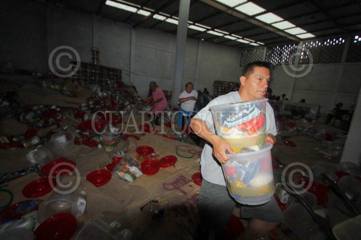 OAXACA, OAXACA., 11MAYO2016.- La tarde de este miércoles fue localizada en la capital del estado una bodega que en el interior contenía cientos de despensas, refrigeradores para negocios, bicicletas y cobijas, además de propaganda electoral a favor del candidato de la coalición "Juntos Hacemos Más", Alejandro Murat Hinojosa. Al lugar arribaron integrantes del equipo de campaña de José Antonio Estefan de la alianza PAN - PRD, quienes abrieron la bodega e instaron a los vecinos a ingresar y tomar las cosas. FOTO: ARTURO PÉREZ ALFONSO /CUARTOSCURO.COM
