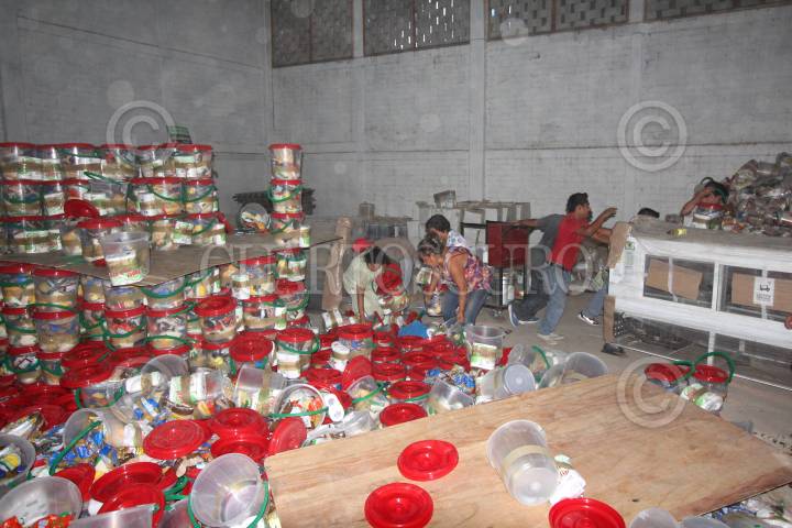 OAXACA, OAXACA., 11MAYO2016.- La tarde de este miércoles fue localizada en la capital del estado una bodega que en el interior contenía cientos de despensas, refrigeradores para negocios, bicicletas y cobijas, además de propaganda electoral a favor del candidato de la coalición "Juntos Hacemos Más", Alejandro Murat Hinojosa. Al lugar arribaron integrantes del equipo de campaña de José Antonio Estefan de la alianza PAN - PRD, quienes abrieron la bodega e instaron a los vecinos a ingresar y tomar las cosas. FOTO: ARTURO PÉREZ ALFONSO /CUARTOSCURO.COM