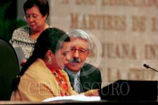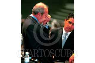 Beatriz Paredes conversa con su compañero de bancada Oscar Levin Coppel, durante la sesión de la Cámara de Diputados. FOTO: Victoria Valtierra/CUARTOSCURO.COM