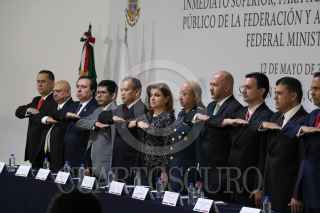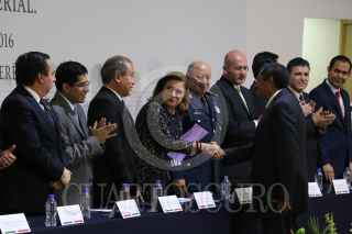 SAN JUAN DEL RÍO QUERETARO 12MAYO2016.- Arely Gómez González, Procuradora General de la República acompañado de Tomás Zerón de Lucio titular de la Agencia de Investigación Criminal y Eber Omar Betanzos Torres, Subprocurador de Derechos Humanos de la PGR a su llegada a la entrega de nombramientos de ascenso a nivel inmediato superior para agentes del Ministerio Público de la Federación y agentes de la Policía Federal Ministerial. FOTO: SAÚL LÓPEZ/CUARTOSCURO.COM