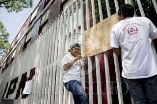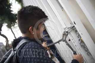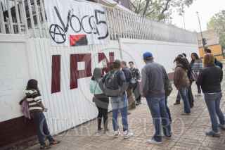 CIUDAD DE MÉXICO, 12MAYO2016.- Los estudiantes de la Vocacional 5 “Benito Juárez García”, del Instituto Politécnico Nacional que mantienen tomadas las instalaciones, no reconocieron validas las votaciones del día de ayer a favor de la reanudación de clases, ya que a pesar de ser la mayoría de los votantes en contra del paro, no se cumplió el 50 más uno de la comunidad estudiantil. Por ello, algunos alumnos acudieron hoy a rechazar la mesa de debate y a pronunciarse en contra de la nueva convocatoria de votación que realizaron los estudiantes que se mantienen en las instalaciones académicas. FOTO: TERCERO DÍAZ /CUARTOSCURO.COM