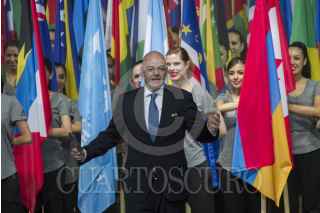 CIUDAD DE MÉXICO, 12MAYO2016.- Se inauguró el 66º Congreso de la FIFA en el Auditorio Nacional, con la presencia de su presidente Gianni Infantino y varias estrellas y ex estrellas del fútbol mundial celebraron este encuentro que estuvo amenizado con bailes y danzas típicos mexicanos. FOTO: MOISÉS PABLO /CUARTOSCURO.COM